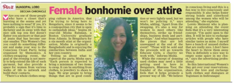 Article (Deccan Chronicle): Female Bonehomie over attir